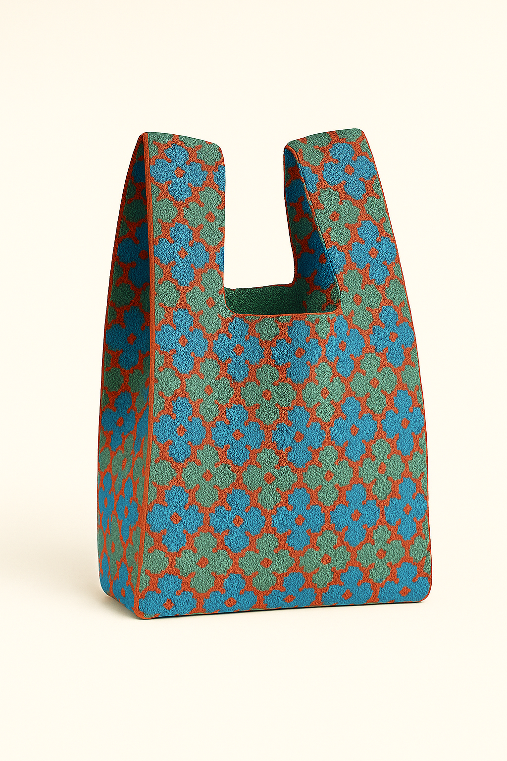 Knitted tote featuring an all-over floral jacquard pattern.