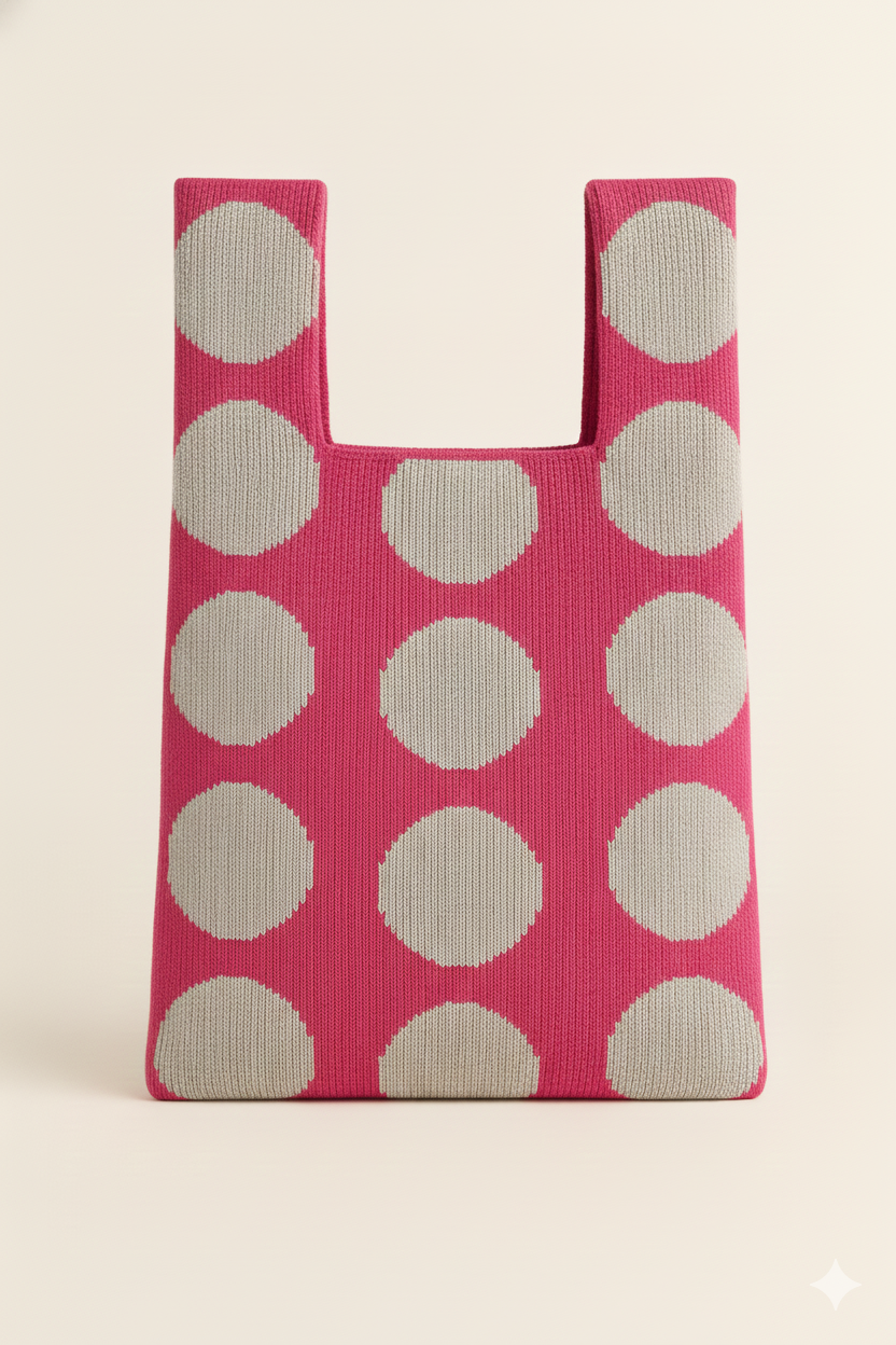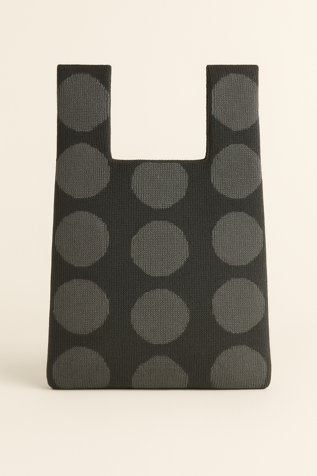 Crafted from hand-woven cotton, this reusable bag features bold charcoal dots over a soft black base — a subtle play of shadow and form. Minimal yet distinctive, it’s lightweight, foldable, and endlessly versatile for everyday use.