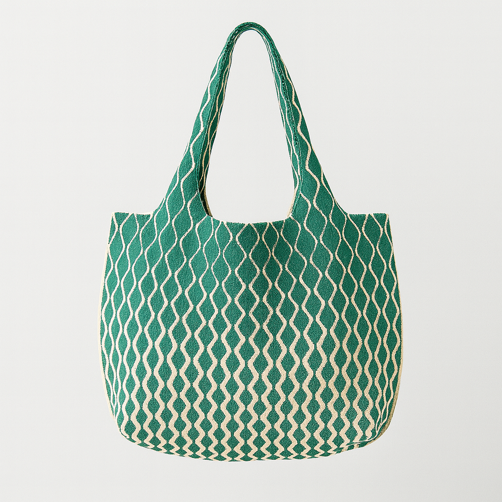Wave Pattern Knit Tote Bag